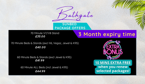 - Sunbed package expiry time is 3 months (90 days) from date of purchase