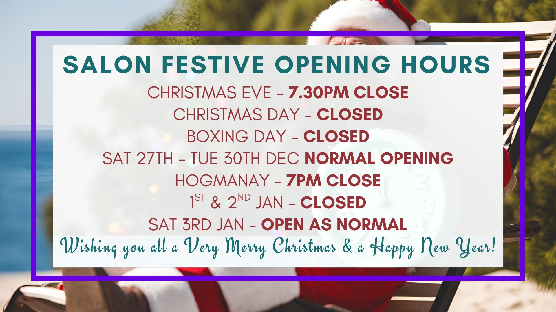To find your nearest salon’s details including opening times and telephone number, please use the Salon Locator link.